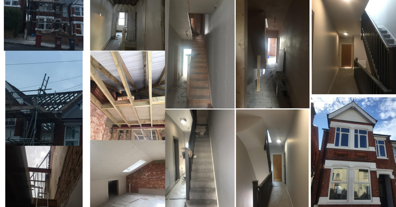 Few images showing residential conversion project into commercial house of multiple let development.
